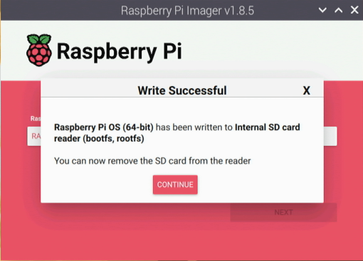 点击保存后点确认进行镜像写入,等待下载并写入验证完成,程序弹出成功提醒后即可取出SD卡。