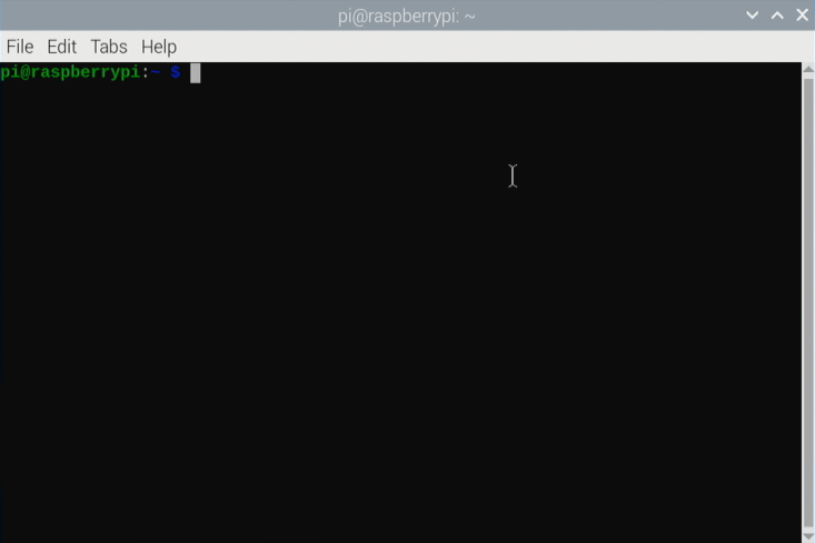 打开后映入眼帘的就是一个黑底,上面有一行pi@raspberrypi:~ $的字样,后面有个光标,如图: