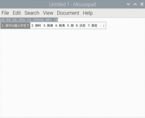 之后我们重启树莓派,只要按Ctrl + 空格就可以切换输入法了,随便打开个可以输入的窗口,如文本编辑器应用菜单 -> Accessories -> Text Editor