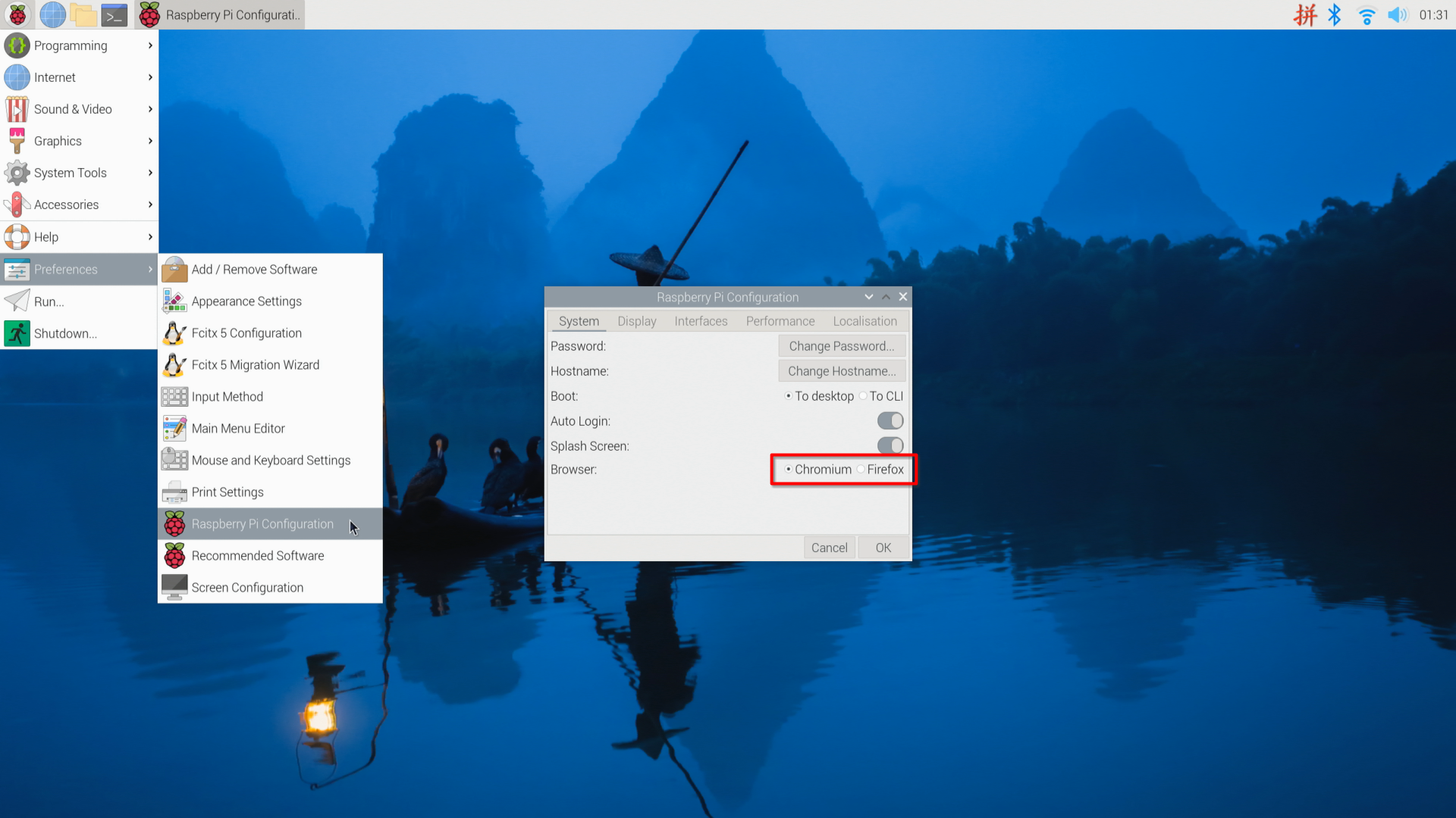 其实浏览器装完系统就可以用了,,默认的浏览器是Chromium,相当于是开源的Google Chrome浏览器。提及这个主要是觉得Chromium比较吃内存,上起网来感觉有点卡。如果你不想使用Chromuim,也可以通过系统设置直接改成Firefox,如图:
