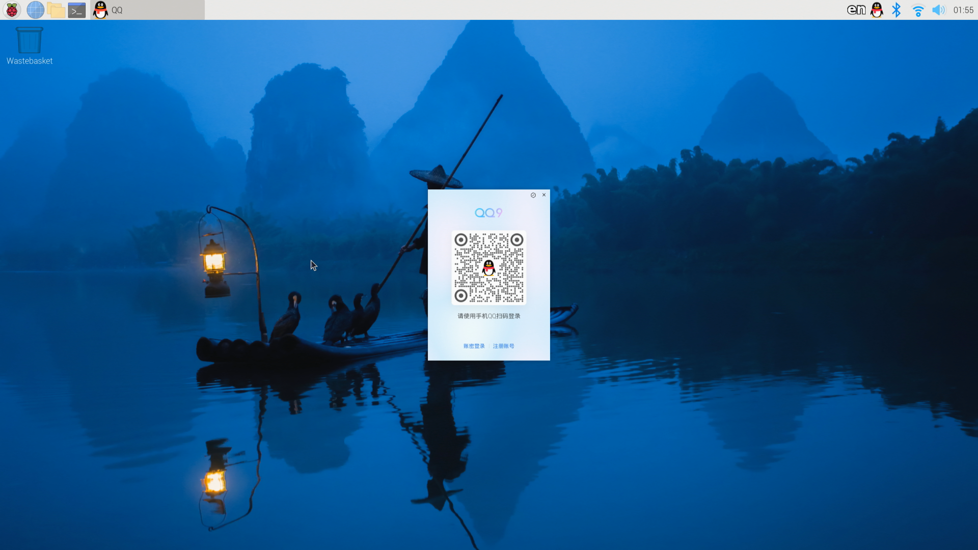 安装完成后,在应用菜单 -> Internet下就会看到QQ了,点击打开QQ,使用手机扫二维码就可以登陆了。