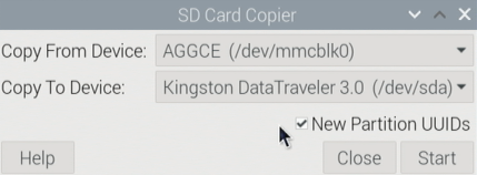 (如果你有可能两个SD卡/U盘同时插着树莓派启动的话建议勾选一下右下角的New Partition UUIDs)。